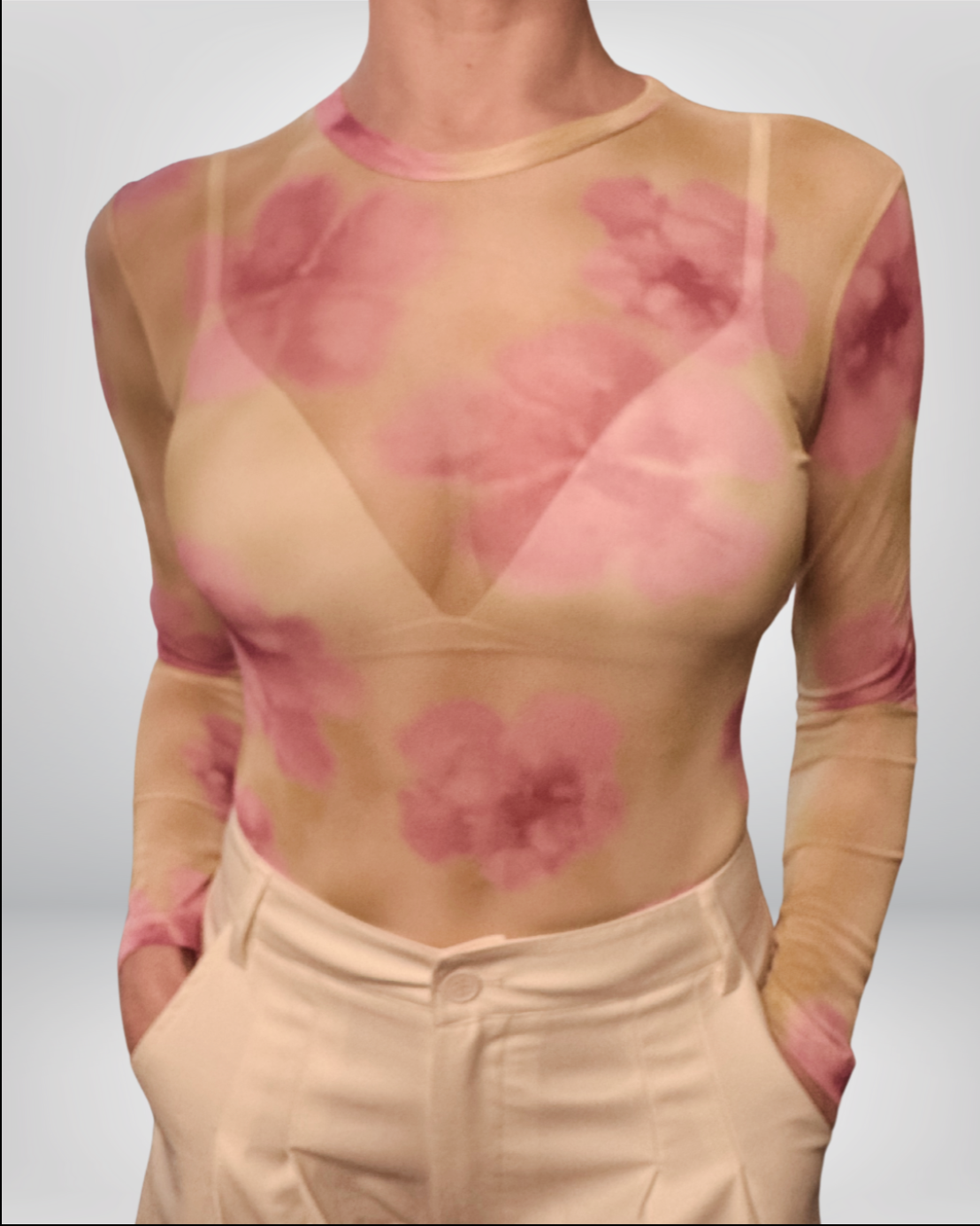Un body velato a maniche lunghe floreale giallo e rosa è un capo d’abbigliamento elegante e romantico.