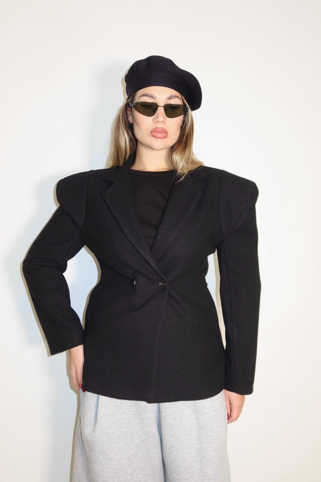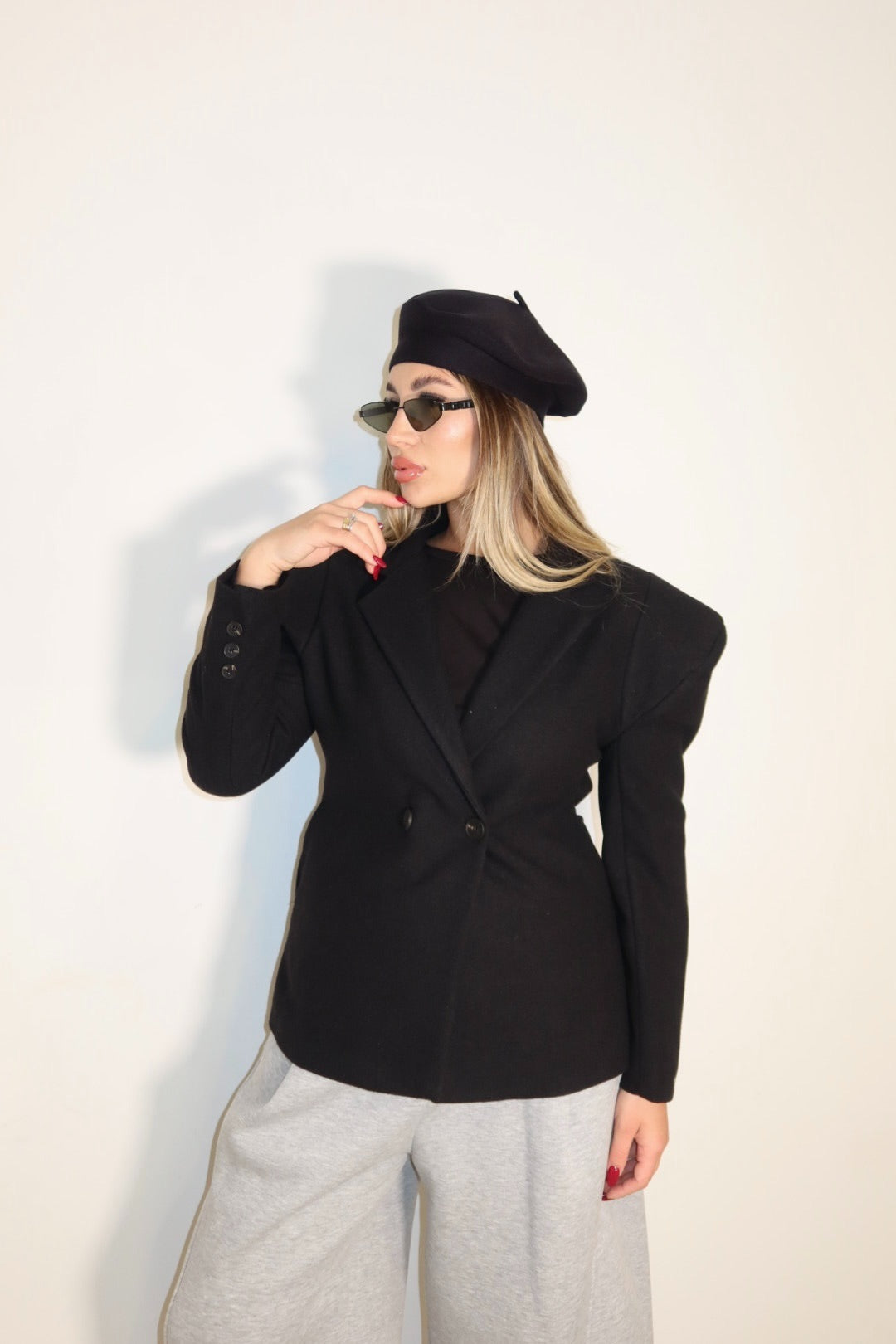 giacca con spalline, bottoncini sul d’avanti , è taglia unica veste benissimo dalla xs-l, in tessuto cappotto super calda .
