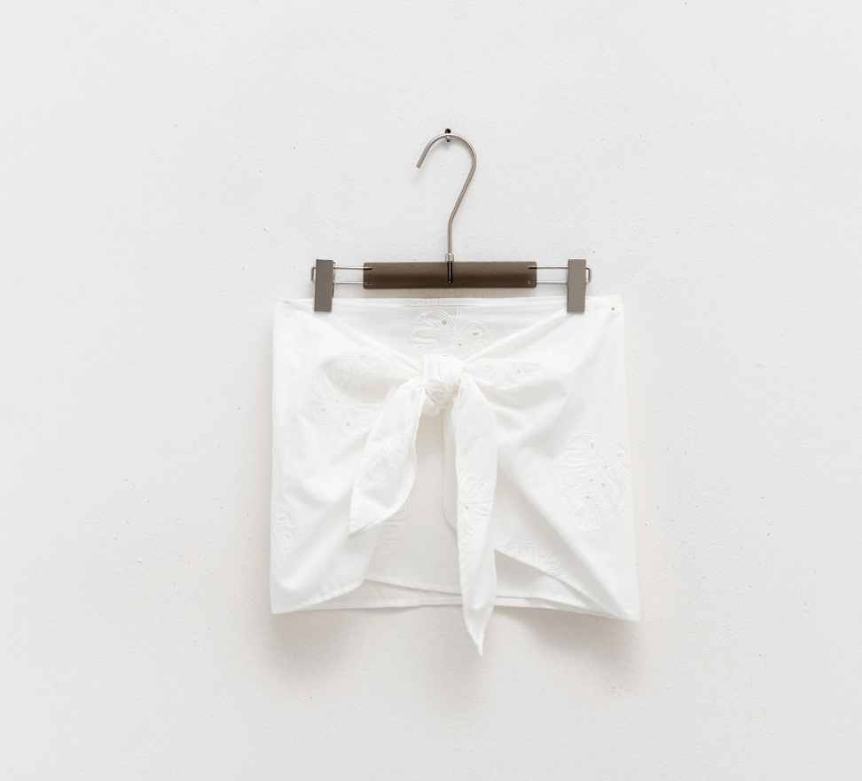 Minigonna LUMINA in cotone pizzo sangallo.Linea dritta. Presenta fiocco regolabile. Fit regolare