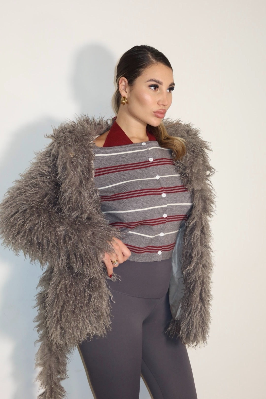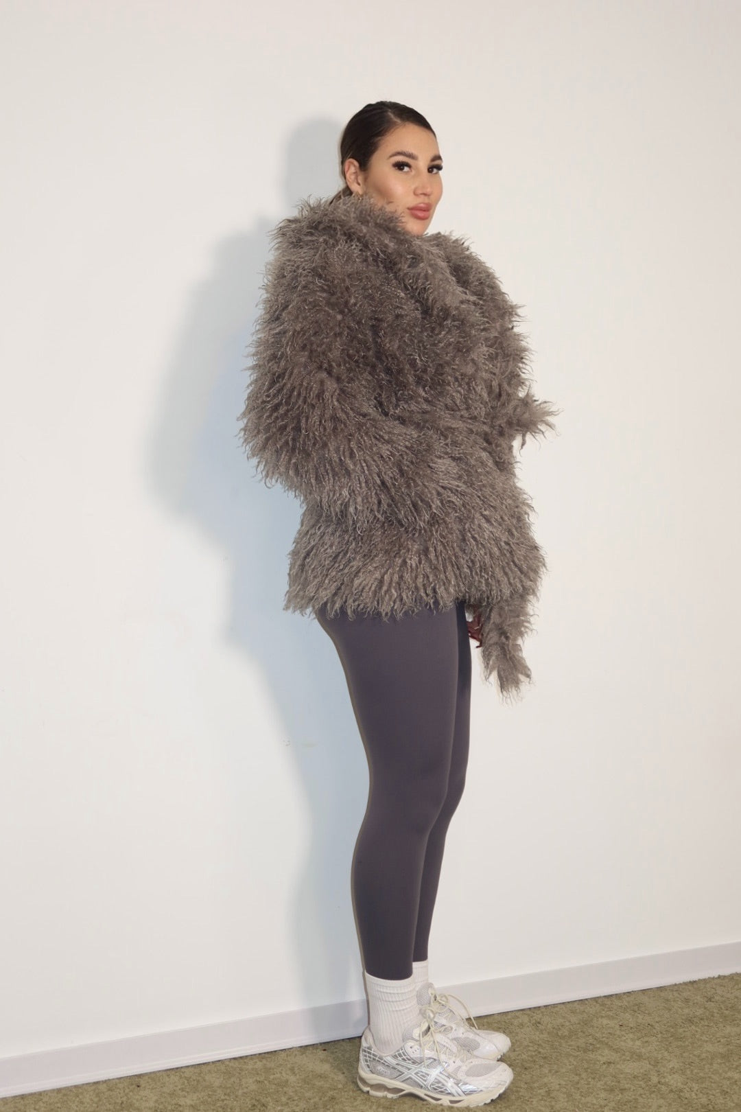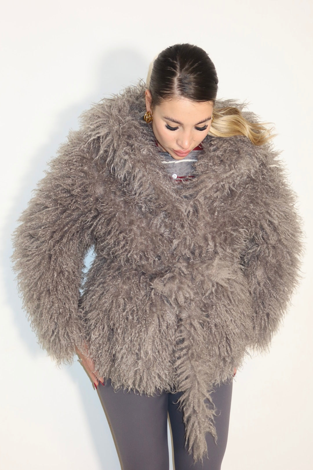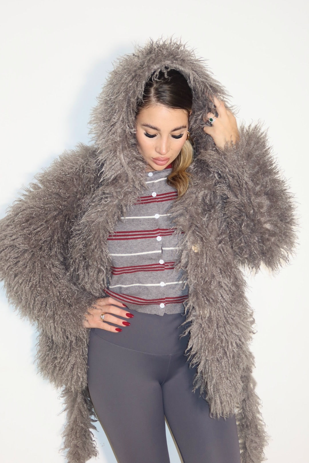 mongolia super bella con bottoni magnetici laccio e cappuccio, taglia unica foderata all’interno.
