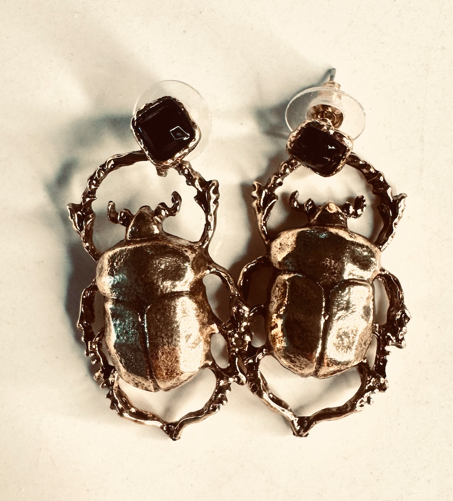 Gli orecchini a forma di scarabeo sono un accessorio affascinante e simbolico, spesso ispirato alla cultura egizia antica, dove il scarabeo rappresentava rinascita, protezione e buon auspicio. Questi orecchini presentano un design stilizzato, realizzati in materiale come oro, con dettagli in smalto e pietre preziose.