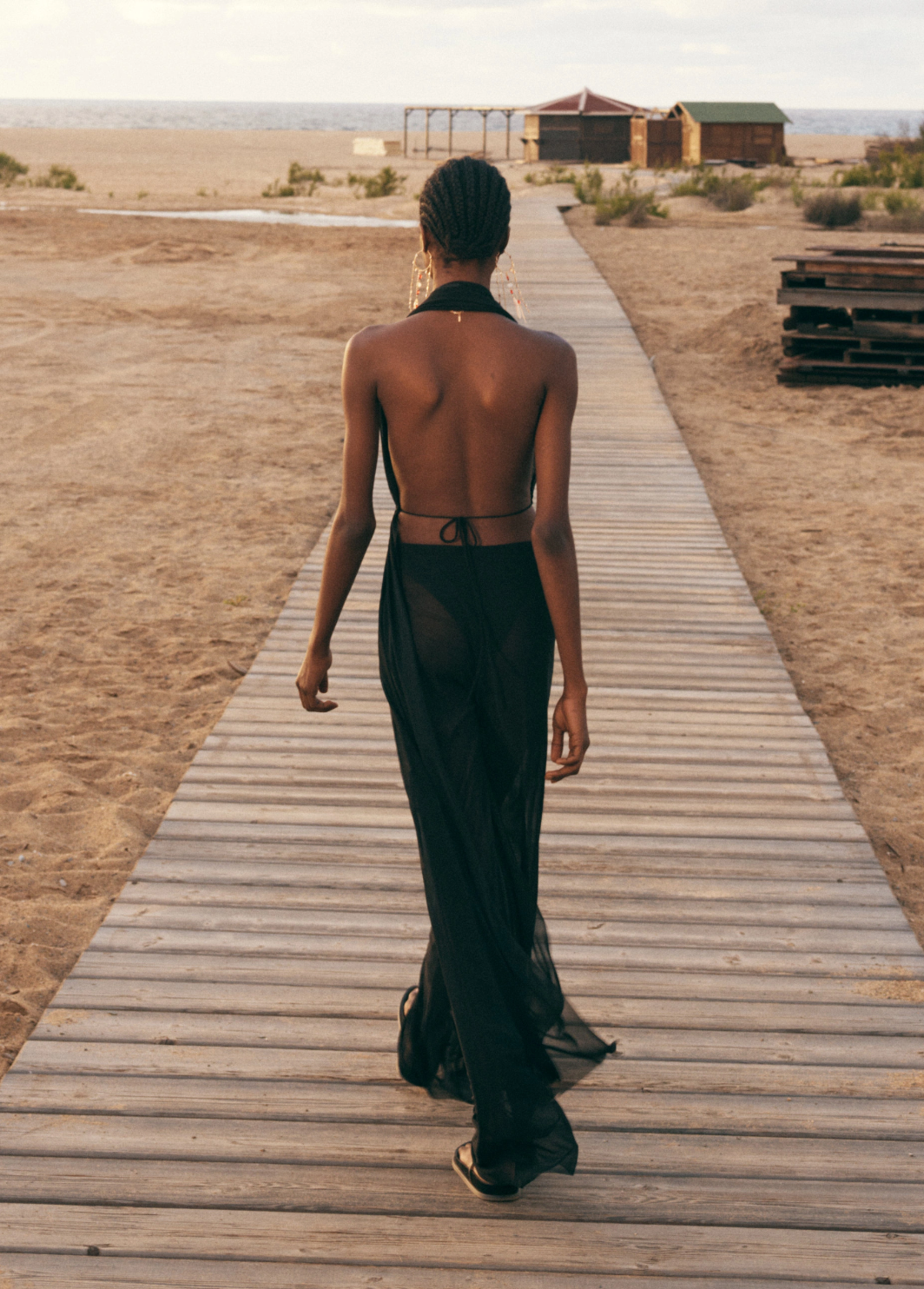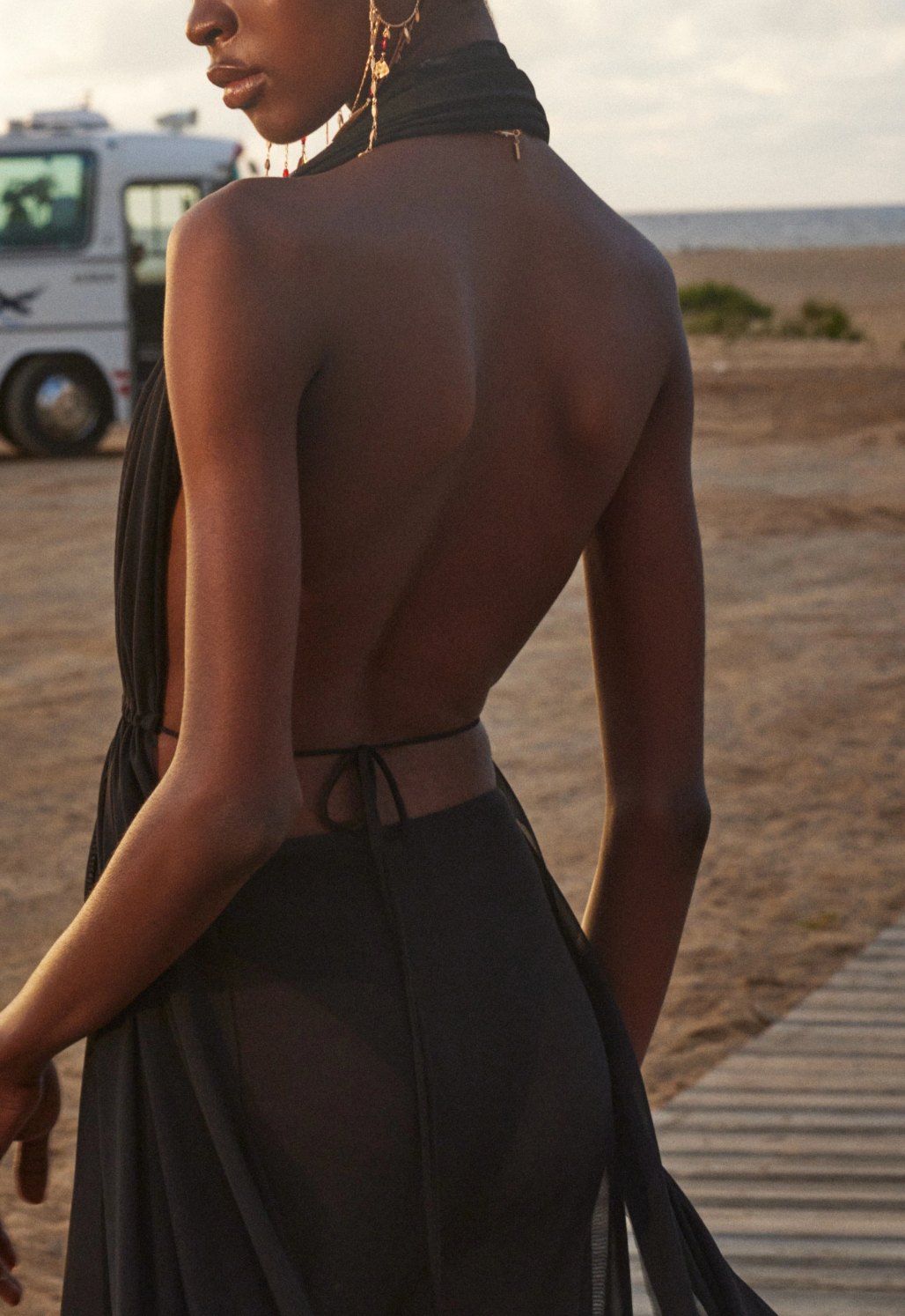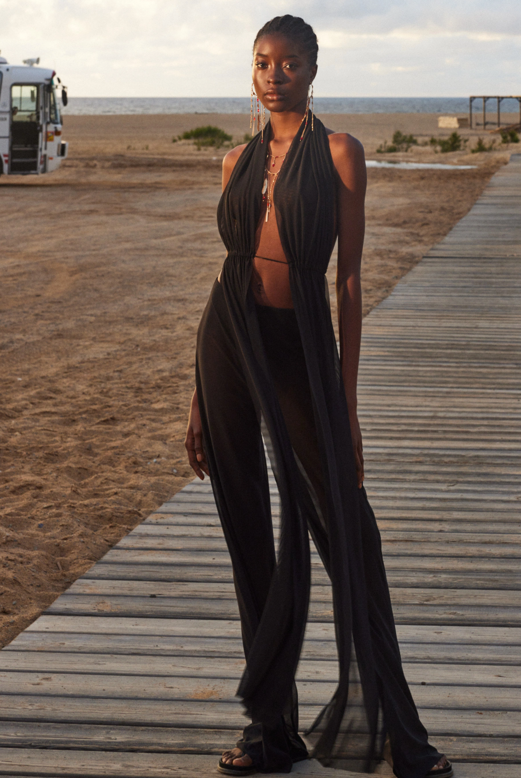 Set top e pantaloni LUMINA in tulle con allacciatura attorno al collo.Presenta trasparenza.Regolabile in vita con laccio. Fit morbido