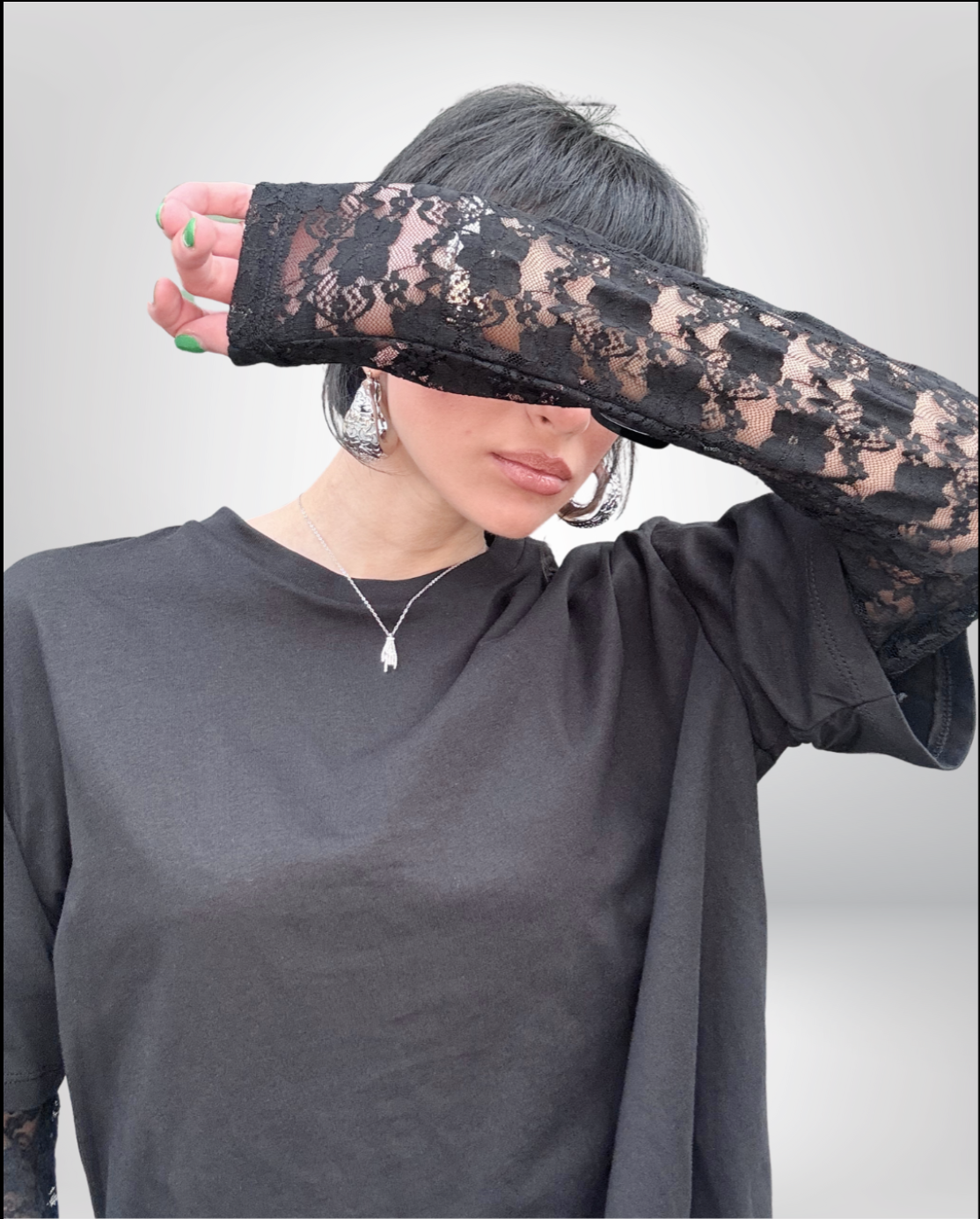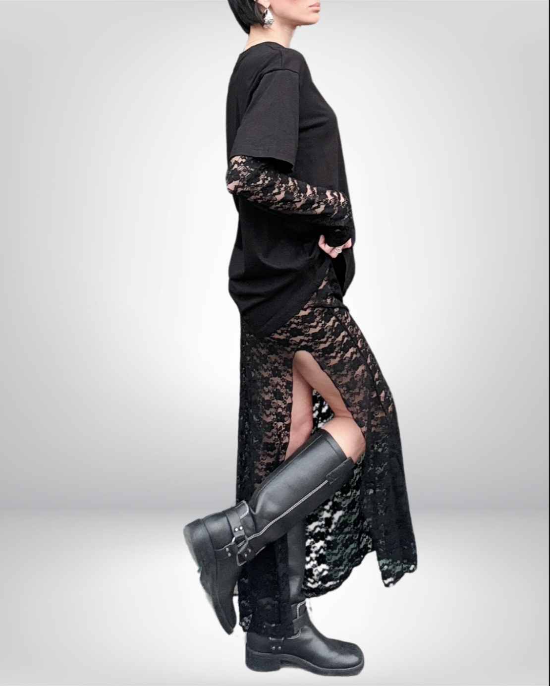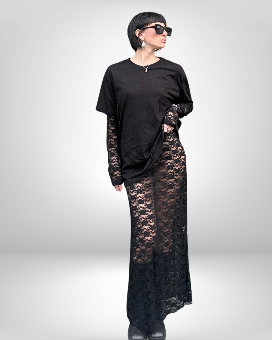 L’abbinamento di questi due capi crea un look unico, dove il romanticismo del pizzo si sposa con la praticità della t-shirt, perfetto per chi desidera esprimere il proprio stile con originalità e creatività.